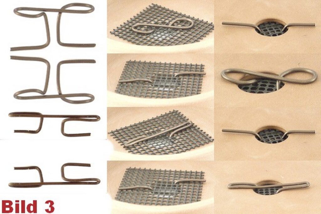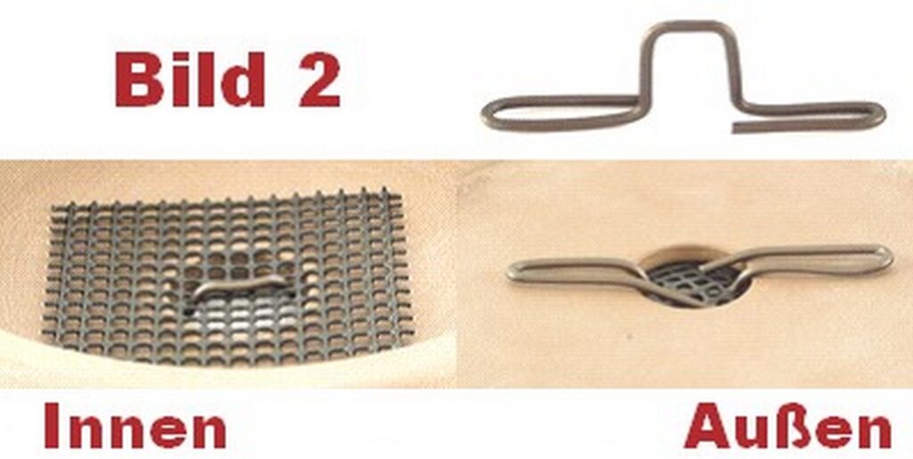 Hier die gleiche Vorgehensweise wie bei Bild 1. Die Enden werden nun schlaufenförmig gebogen und die Spitzen nach innen in das Loch gebogen. Somit besteht keine Verletzungsgefahr.